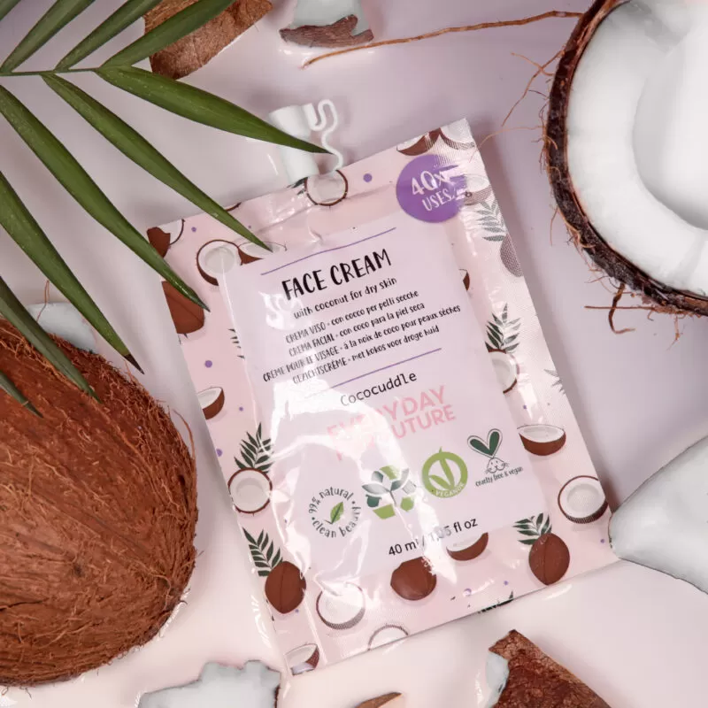 Wrap your skin in a rich, velvety, super-emollient coconut blanket. Cococuddle Face Cream for dry skin moisturizes and soothes redness while having an emollient effect on the skin, leaving it soft and velvety.