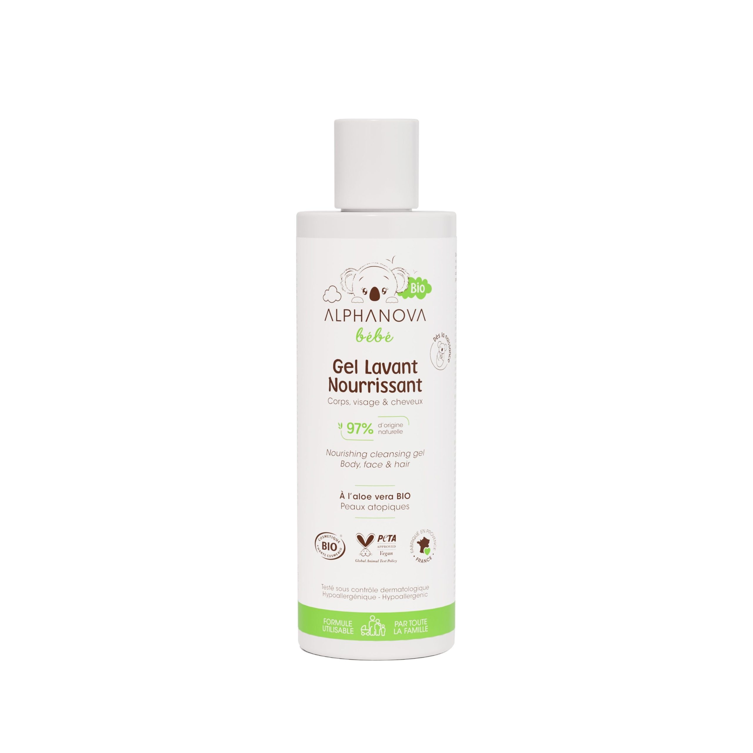 Alphanova Bébé Nourishing Cleansing Gel puhastab õrnalt ja rahustab kuiva ja atoopilist nahka, alates sünnist, igapäevase vanniskäigu ajal. Selle koostis sisaldab 97% looduslikku päritolu koostisosi, lõhnavaba, sulfaadi- ja seebivaba, jätab naha puhtaks, pehmeks ja rahustavaks.