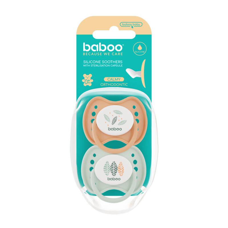 BABOO® Calmy ortodontiline silikoonlutt toetab beebi loomulikku suu arengut ning on komplektis hügieenilise steriliseerimis- ja hoiukapsliga.