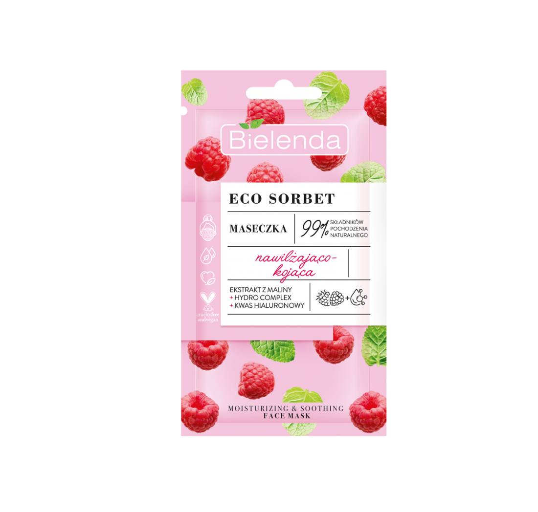 Mask niisutab, rahustab ja värskendab nahka optimaalselt. Ei koorma nahka ega mõjuta selle loomulikku hüdro-lipiidide tasakaalu ning hoolitseb suurepäraselt ka teie jume eest. Bielenda pani maski tõhusad toimeained. Vaarikaekstrakt toetab naha hüdro-lipiidbarjääri, niisutab ja toidab nahka intensiivselt. Hydro Complex betaiini ja trehaloosi segu, sellel duol on suurepärased niisutavad ja rahustavad omadused. Hüaluroonhape sügavniisutab ja taaselustab nahka.