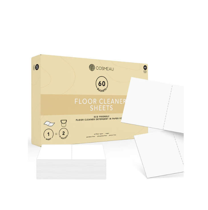 Keskkonnasõbralik põrandapuhastusvahend mugavas paberlehe vormis – lihtsalt lisa leht veeämbrisse ning puhastuslahus on valmis. Biolagunevad puhastuslehed võtavad vähe ruumi, on kerged, plastivabad ning odavamad kui traditsioonilised põrandapuhastusvahendid. Kontsentreeritud koostis eemaldab tõhusalt mustuse ja plekid ning ensüümivalem tagab antibakteriaalse toime. Sobib kõikidele põrandatüüpidele, sh laminaat, puit, plaadid ja valatud põrandad.