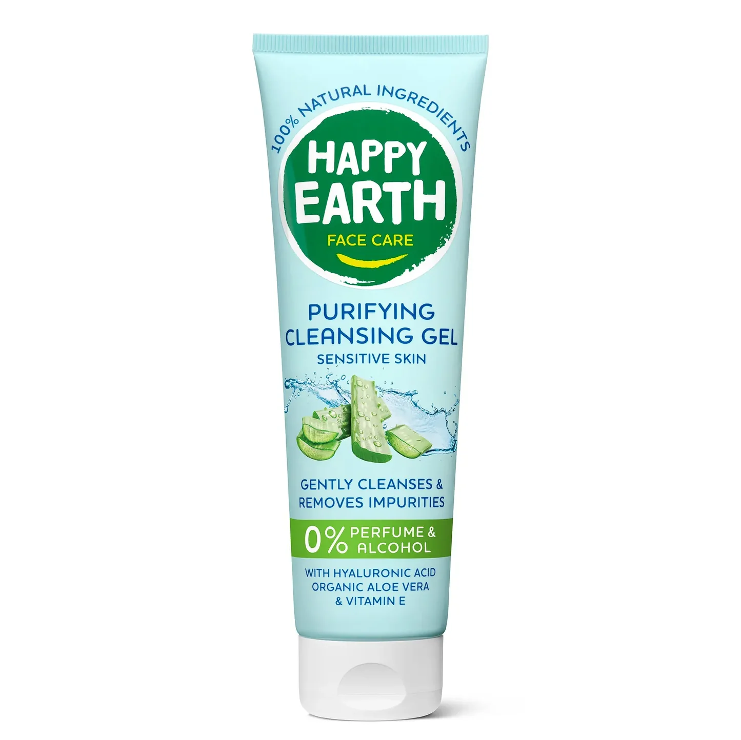 Happy Earth puhastav näopesugeel 150 ml puhastab naha tõhusalt, kuid õrnalt, eemaldades meigi ja ebapuhtused ilma nahka kuivatamata. 100% loodusliku koostisega geel sisaldab hüaluroonhapet, orgaanilist aaloed ja E-vitamiini, mis aitavad nahka niisutada, rahustada ja kaitsta, jättes selle värskeks, puhtaks ja mugavaks.