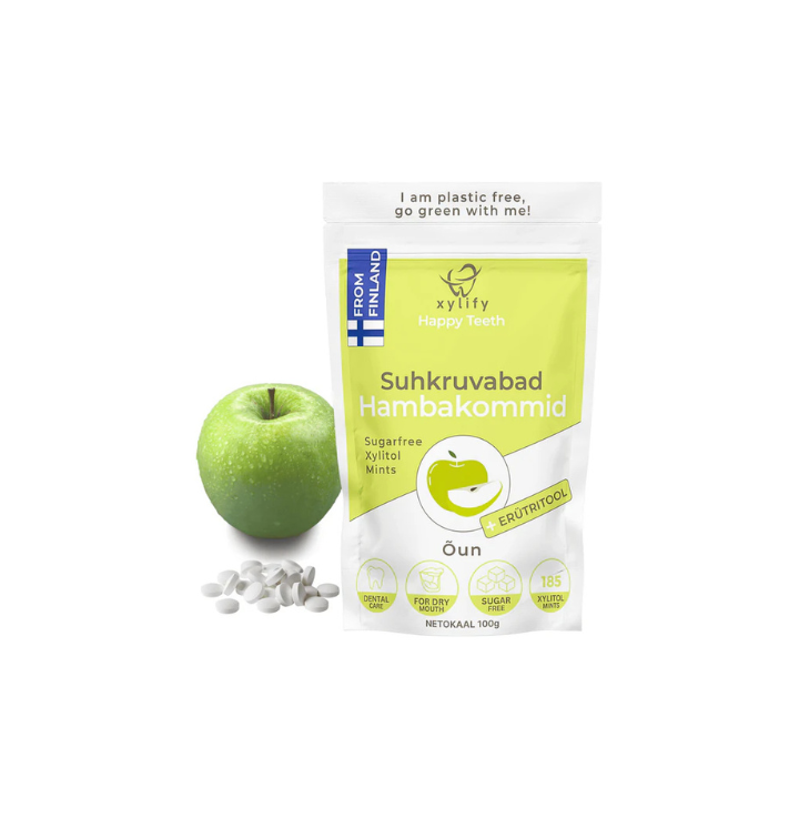 Happy Teeth õunamaitselised pastillid on suuhooldust toetav ja maitsev alternatiiv tavalistele suhkrurikkatele maiustustele. Pastillid on magustatud ksülitooli ja erütritooliga, mis toimivad koos eriti tõhusalt suu tervise hoidmisel. Loomuliku ja värske õunamaitsega hambakommid sobivad igapäevaseks kasutamiseks nii lastele kui ka täiskasvanutele ning aitavad hoida hambad ja suu värskena kogu päeva vältel.