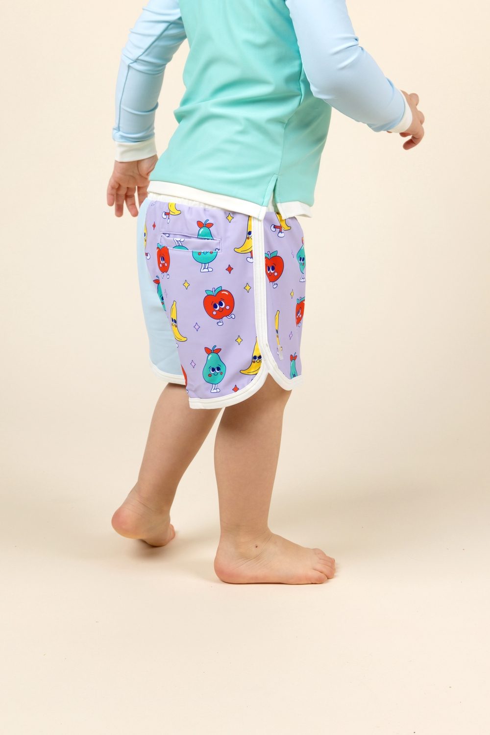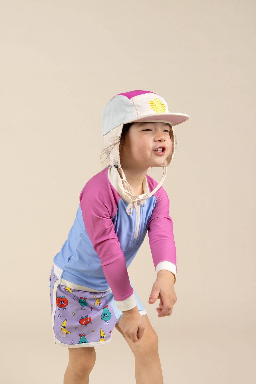 Pükstel on UV-sensor, mis muudab päikese tugevnemisel värvi (mida lillakam toon, seda rohkem on lisakaitset vaja) – lihtne viis õpetada lapsi päikese eest hoolitsema.