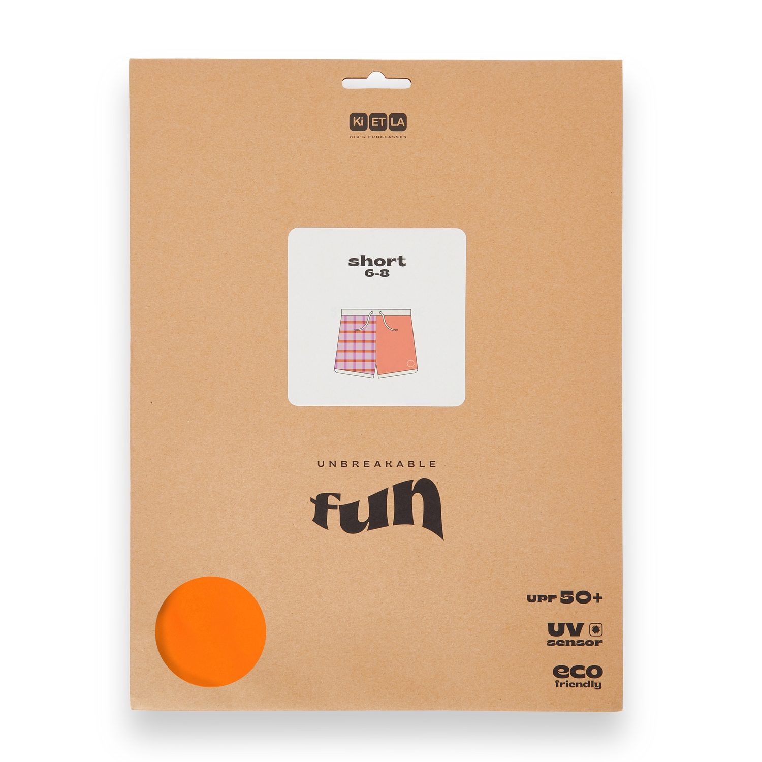 KIETLA ICONIK lühikesed püksid UV-kaitsega aktiivsetele lastele. UPF 50+ kangas pakub 100% UVA- ja UVB-kaitset ilma keemilise töötluseta ning sisseehitatud UV-sensor aitab jälgida päikesekiirguse tugevust. Valmistatud GRS-sertifitseeritud taaskasutatud materjalist, Oeko-Tex sertifikaadiga, pehme ja mugav kanda. Sobib randa, basseini ja igapäevasteks õuetegevusteks.