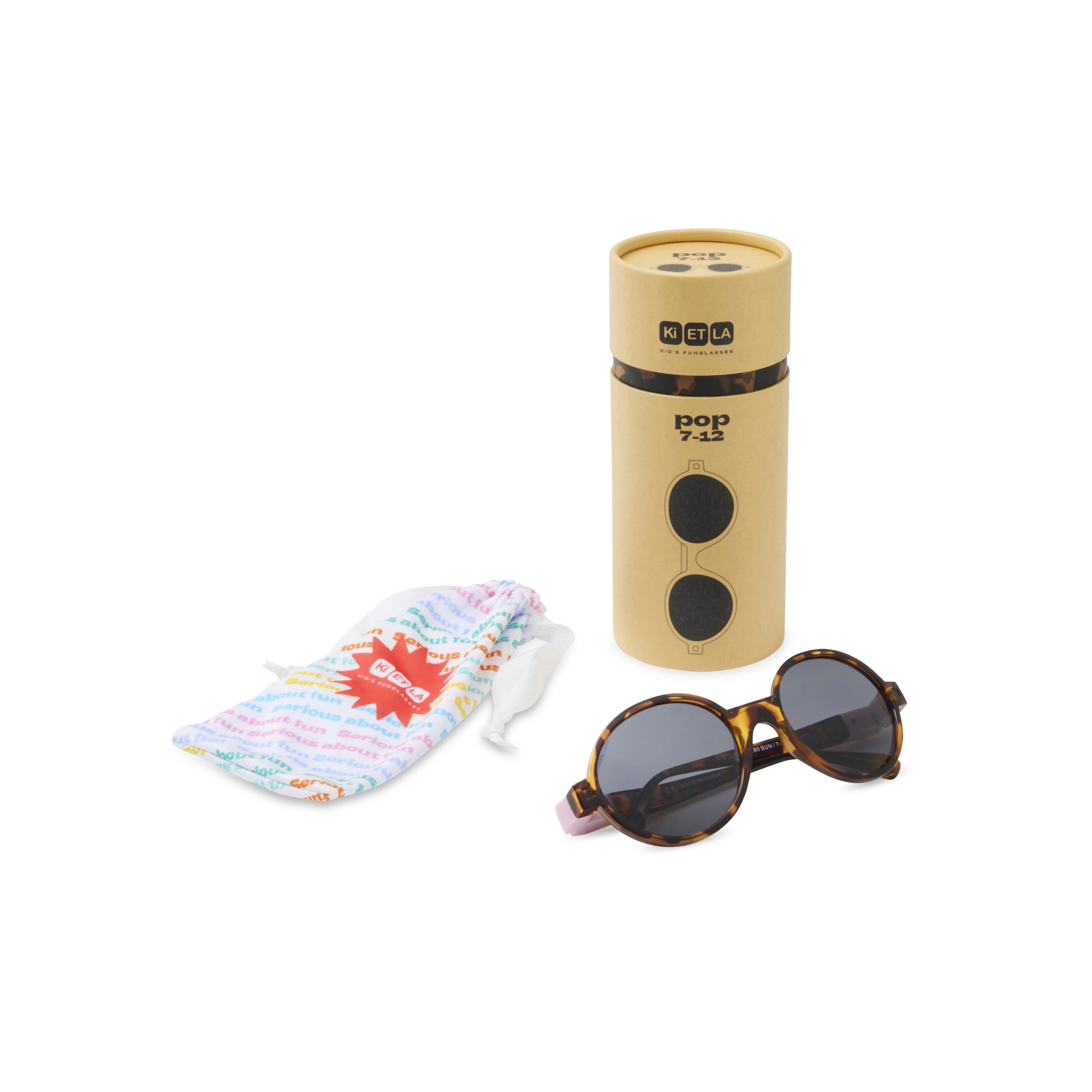 KIETLA POP ümmarguse pantos-kujuga laste päikeseprillid vastupidava 180° painduva raamiga. Kategooria 3 polariseeritud UV400 läätsed filtreerivad 100% UVA-, UVB- ja UVC-kiirgusest ning vähendavad pimestust. Ülikerge ja mugav, saadaval suurustes 4–7 ja 7–12.