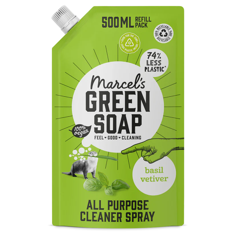 Marcel’s Green Soap täitepakend on vähemalt 97% biolagunev. Selle kuluefektiivse täiteainega säästate pudeliga võrreldes 56% plasti.