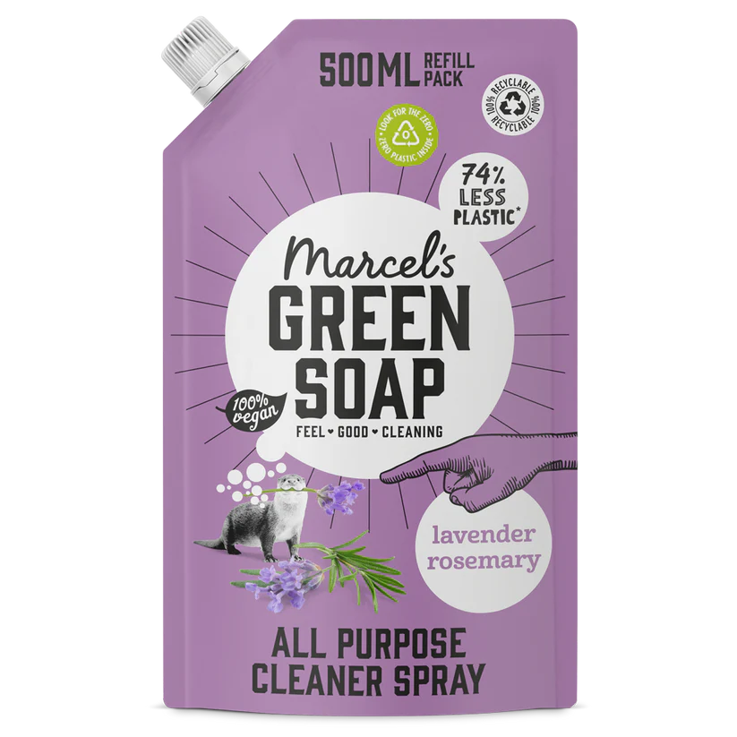 Marcel’s Green Soap täitepakend on vähemalt 97% biolagunev. Selle kuluefektiivse täiteainega säästate pudeliga võrreldes 56% plasti.