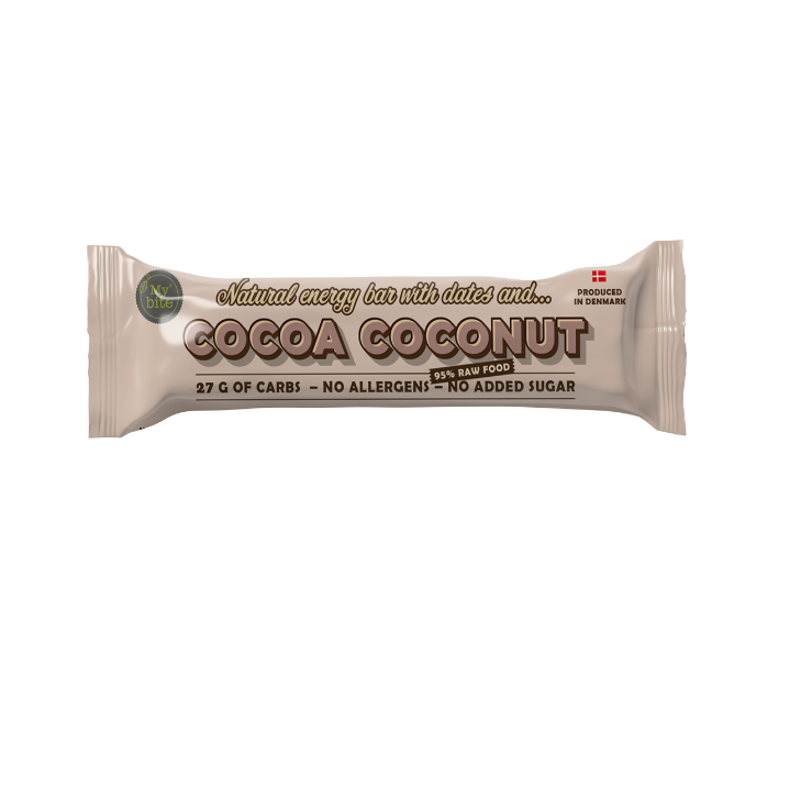 Datlipõhine energiabatoon kakao ja kookose maitsega. Ilma lisatud suhkruta – sisaldab üksnes puuviljades looduslikult esinevaid suhkruid.