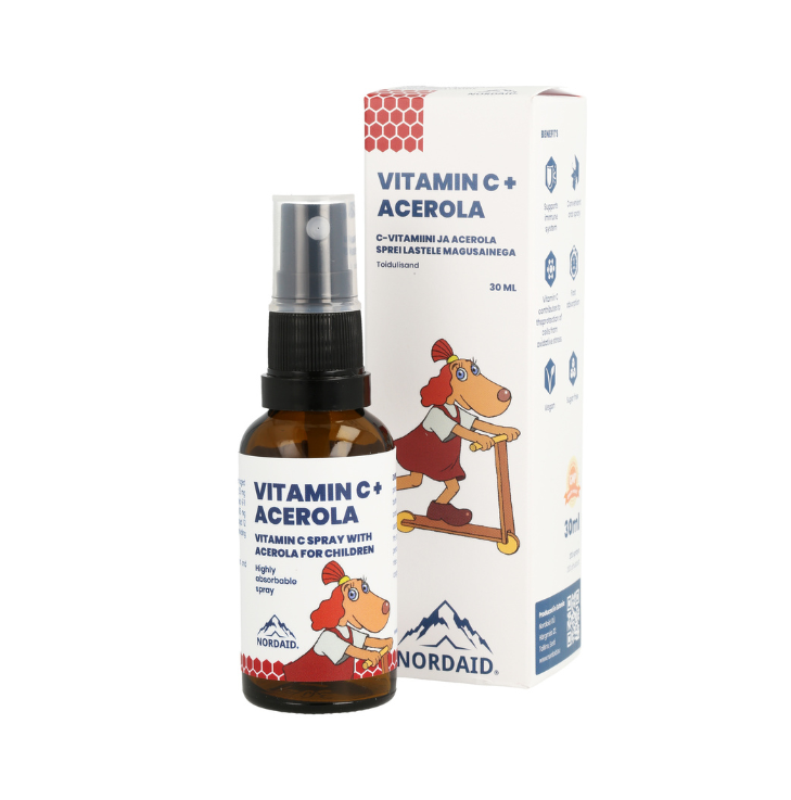 1 pihustus sisaldab 50mg C-vitamiini (62,5%*), 3 pihustust sisaldab 150mg C-vitamiini (187,5%*), 5 pihustust sisaldab 250mg