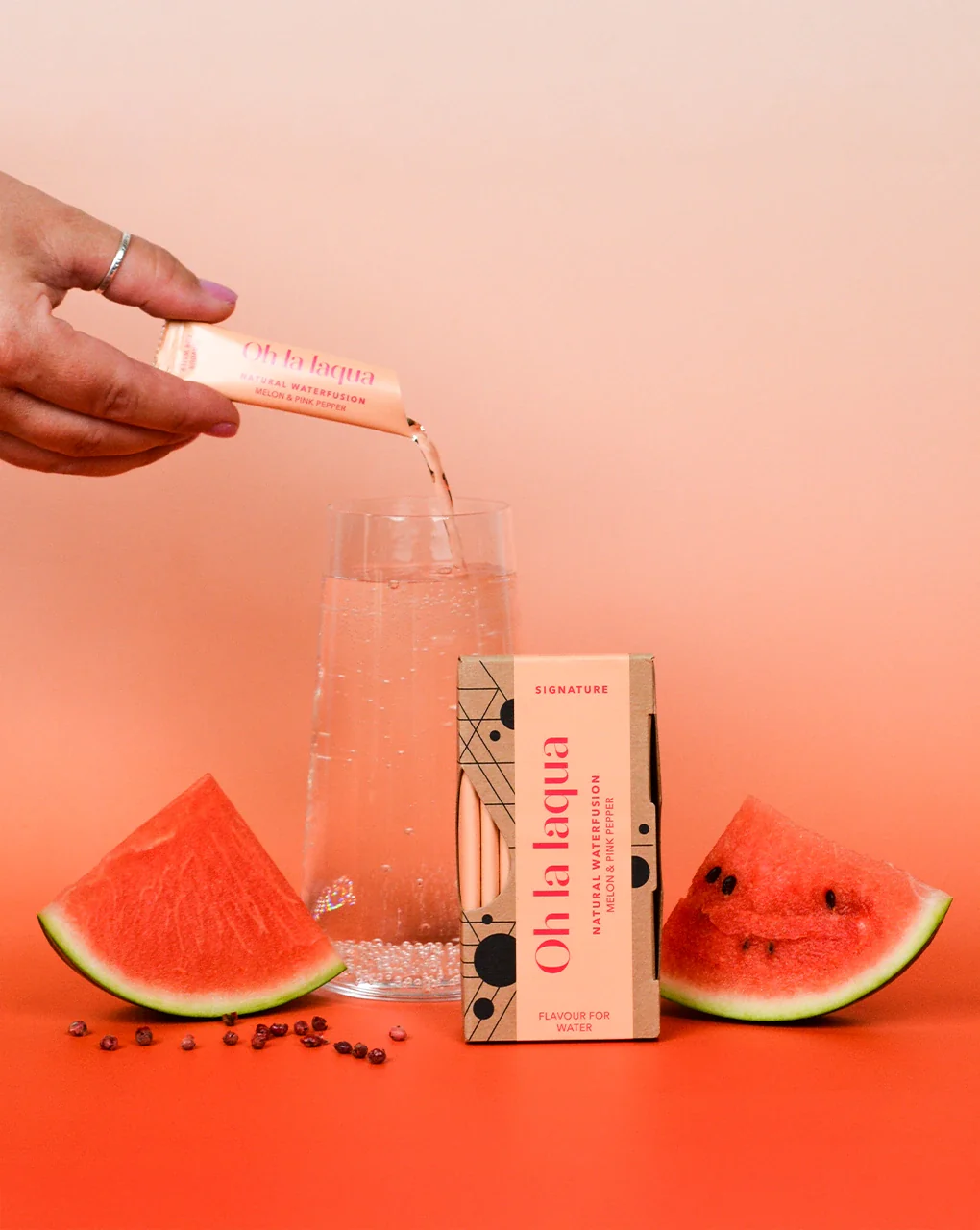 Melon & Pink Pepper Waterfusion ühendab mahlase arbuusi magususe ja roosa pipra õrna vürtsika nüansi. Tulemus on värskendav, tasakaalustatud ja veidi ootamatu – nagu väike paus argipäevas, mis toob hetkeks rahu ja selguse. Ideaalne valik neile, kes hindavad puuviljaseid maitseid, kuid otsivad midagi veidi erilisemat kui klassikaline magusus.