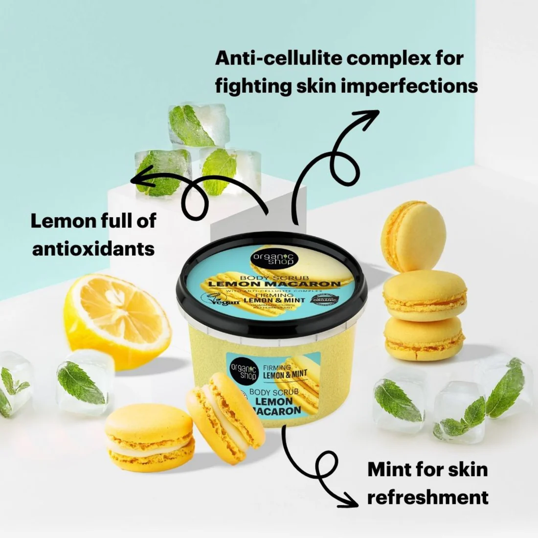 Sära ja suvetunne igas koorimises! Pinguldaval kehakoorijal on eriline tekstuur, mis meenutab sidrunimakrooni, ning see katab Sinu naha värskendava tsitrusekommi aroomiga.