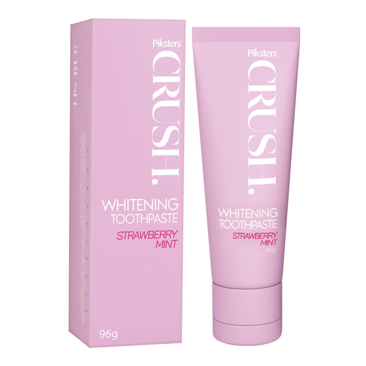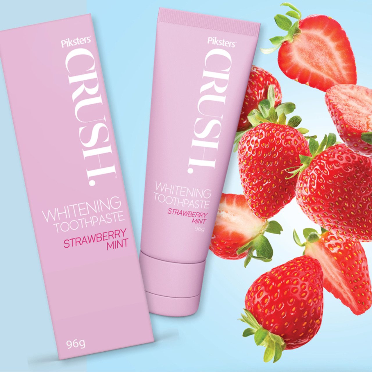 Naudi iga harjamisega maitsvat maasika ja piparmündi värskust! Piksters® CRUSH® Strawberry Mint valgendav hambapasta sisaldab PAP-toimeainet, mida kasutatakse professionaalsetes valgendustoodetes, aidates eemaldada plekke ja taastada hammaste loomuliku valge tooni.