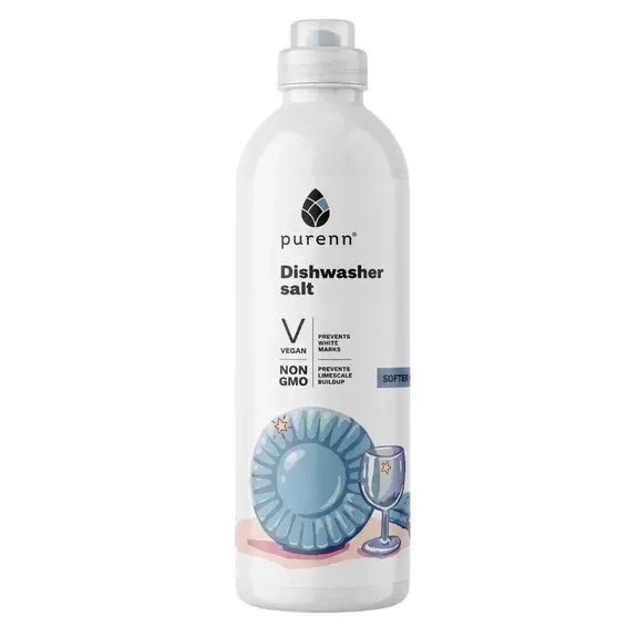 Purenn nõudepesumasina sool on spetsiaalselt loodud vee pehmendamiseks, et tagada säravpuhad nõud ja kaitsta nõudepesumasinat katlakivi eest. See aitab vältida valgeid jälgi klaasidel ja nõudel, parandab pesuvahendi tõhusust ning pikendab masina kasutusiga.