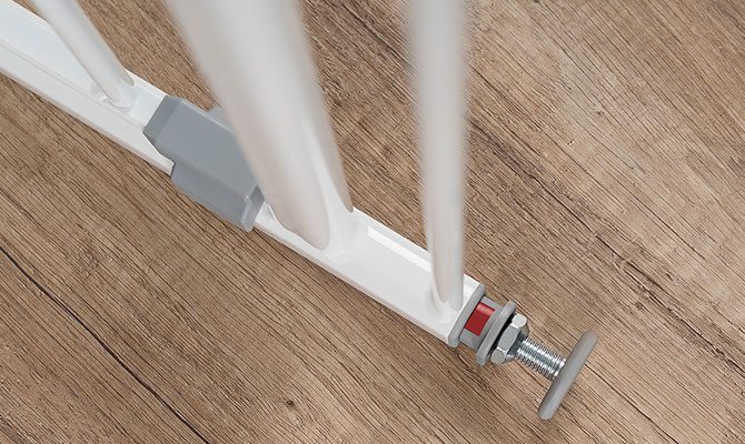 Tänu survekinnitussüsteemile paigaldatakse värav kiiresti ja tööriistavabalt ukseavasse või vahekäiku. Paigaldus ei kahjusta seinu ega uksepiitasid, mistõttu on see ideaalne lahendus ka üürikorterisse. Integreeritud paigaldusindikaator kinnitab visuaalselt, et värav on kindlalt fikseeritud.