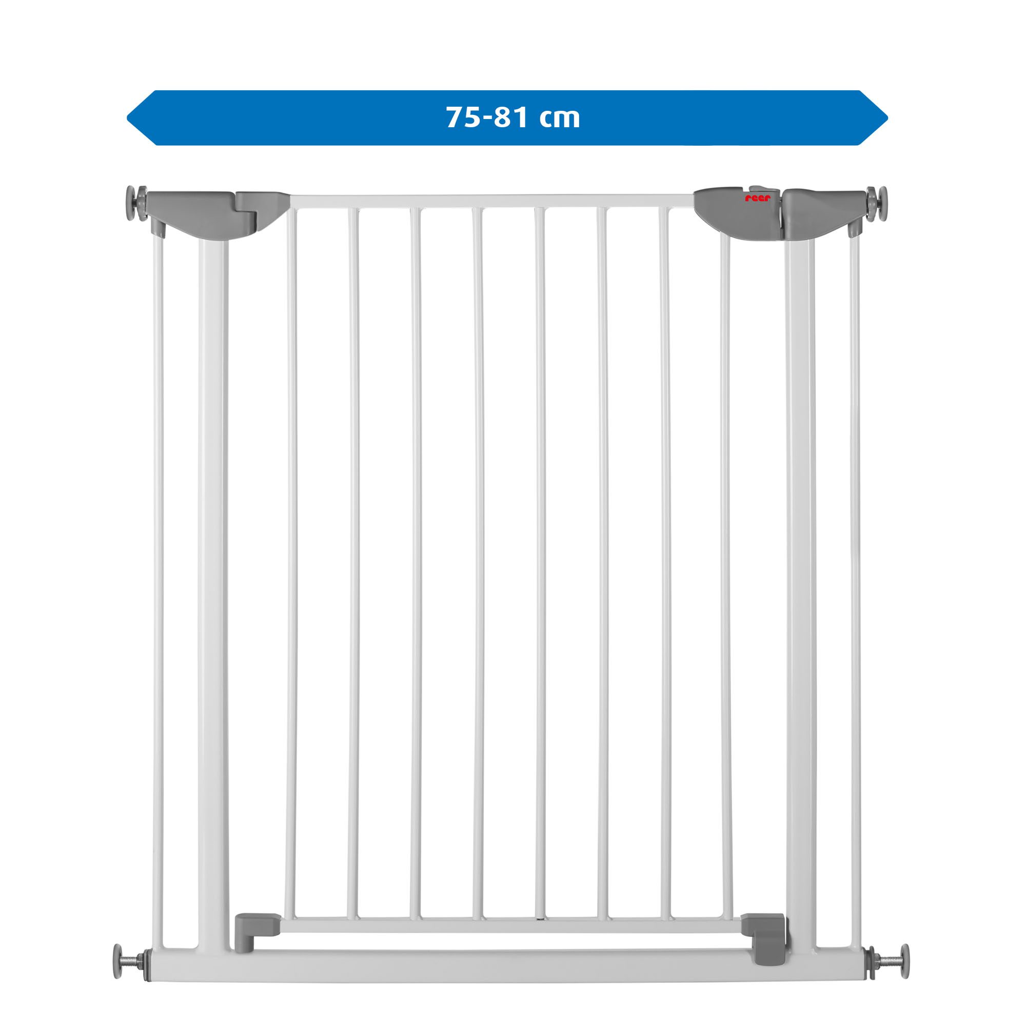 Värav sobib ukseavadele laiusega 75–81 cm. Vajadusel saab seda laiendada kuni 95 cm, kasutades kuni kahte lisapikendust (müügil eraldi). Värav avaneb mõlemas suunas, pakkudes mugavust igapäevases kasutuses. Kui soovid avamissuunda piirata, saab selleks kasutada komplektis olevat stopperit.