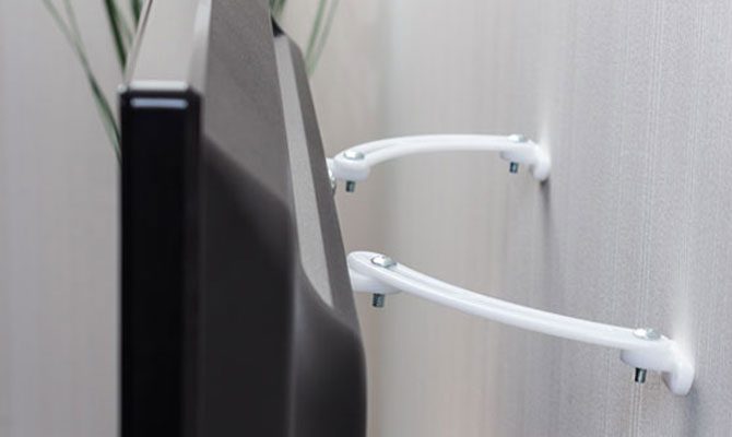 Kvaliteetsest ja vastupidavast materjalist valmistatud tugev kinnitus ühendab teleri kindlalt seinaga, pakkudes topeltkaitset: takistab nii ette- kui tahapoole ümberkukkumist.