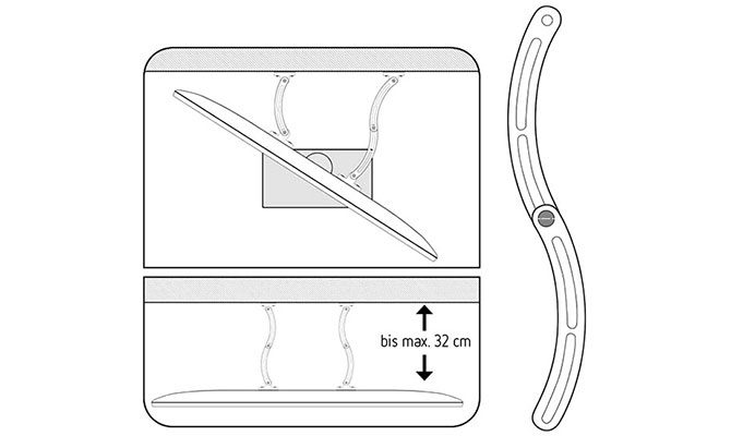 Lisakomplekti abil saab süsteemi vajadusel pikendada kuni 32 cm kaugusele seinast või kasutada keerulisemate paigaldustingimuste korral, näiteks kallutatud telerite puhul.