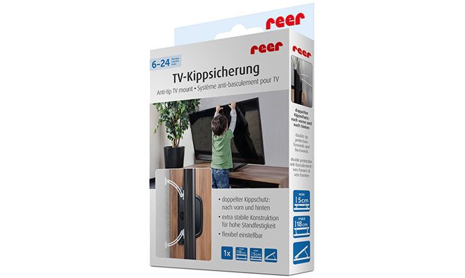 Kaasaegsed lameekraantelerid võivad väikeste laste uudishimulike käte või ronimiskatsete tõttu kergesti kõikuma hakata ja ümber kukkuda. REER teleri ümberkukkumise vastane kaitse aitab vältida ohtlikke õnnetusi, kinnitades teleri kindlalt seina külge ning vähendades märkimisväärselt ümberkukkumise riski.