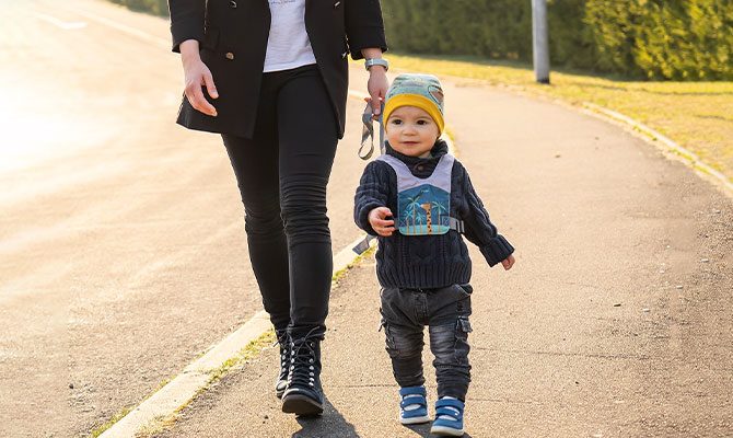 • Väldib, et laps jookseks ootamatult sõiduteele või kaoks rahvahulka