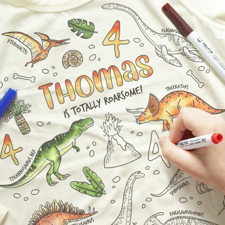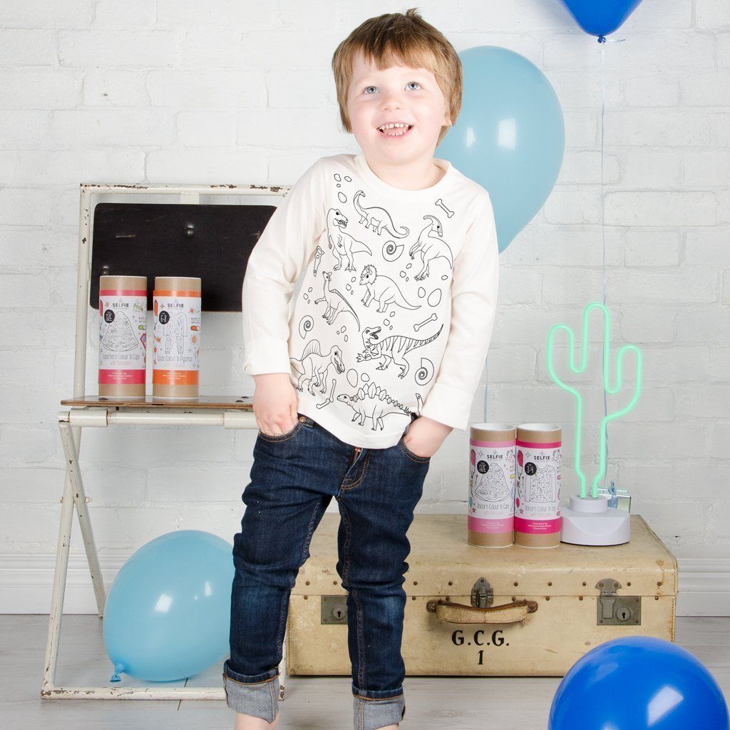 Too eelajaloolised hiiglased ellu koos Dinosaur Colour-In t-särgiga, kus lapsed saavad ise värvida võimsaid T-Rex’e, Stegosauruseid ja palju muud! Ideaalne kombinatsioon lõbusast loovtegevusest ja mugavast igapäevariietusest.
