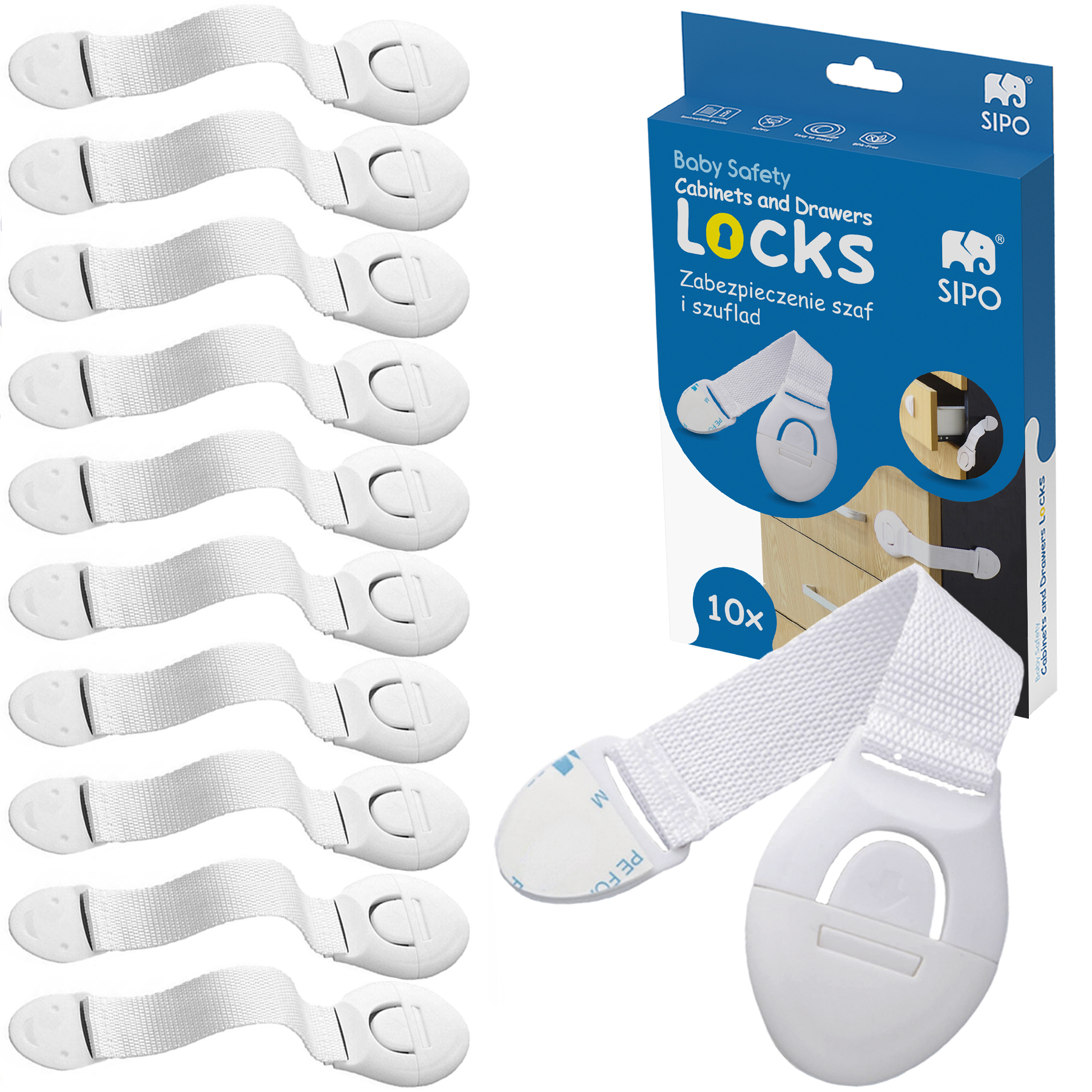 – 10 turvalukku koos tugeva 3M kleeplindiga.