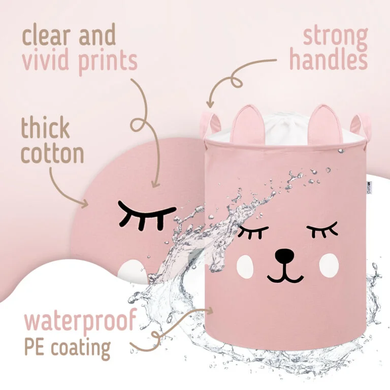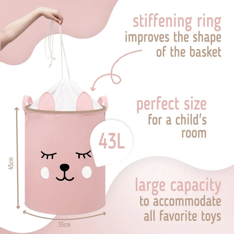 Kokkupandav disain võimaldab korvi lihtsalt hoiustada või transportida – sobib nii igapäevaseks kasutamiseks kui ka reisile kaasa võtmiseks. Topelttugevdatud küljed ja sisemine traatraam annavad korvile stabiilsuse ja vormi, mistõttu püsib see ka tühjana ilusasti püsti. Mahu ja välimuse poolest sobib see suurepäraselt nii poiste kui tüdrukute tuppa.