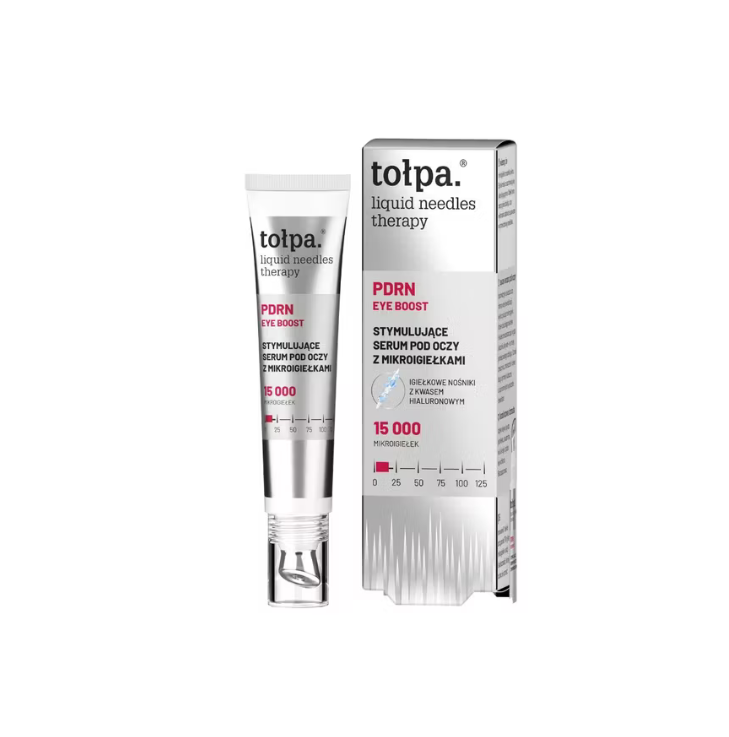 tołpa.® liquid needles therapy silmaümbruse seerum mikronõeltega PDRN Eye Boost 15 ml elustab ja silub õrna silmaümbruse nahka, aidates vähendada tumedaid silmaaluseid ja kortse ning taastada värske ja puhanud ilme.