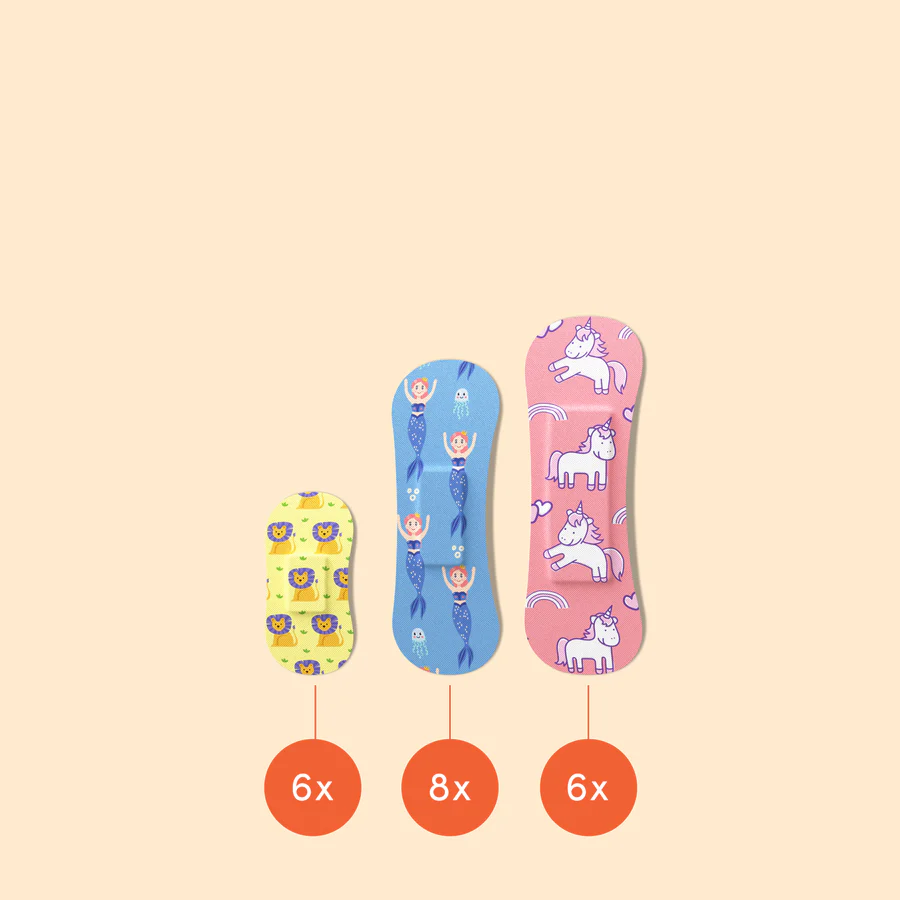 Komplektis leiduvad armsad ükssarviku, merineitsi ja lõvi kujundusega plaastrid toovad naeratuse igale väikesele haavatud seiklejale. Tänu nendele patentse kujuga plaastritele on igasugune väike kriimustus kaetud stiilselt ja tõhusalt.