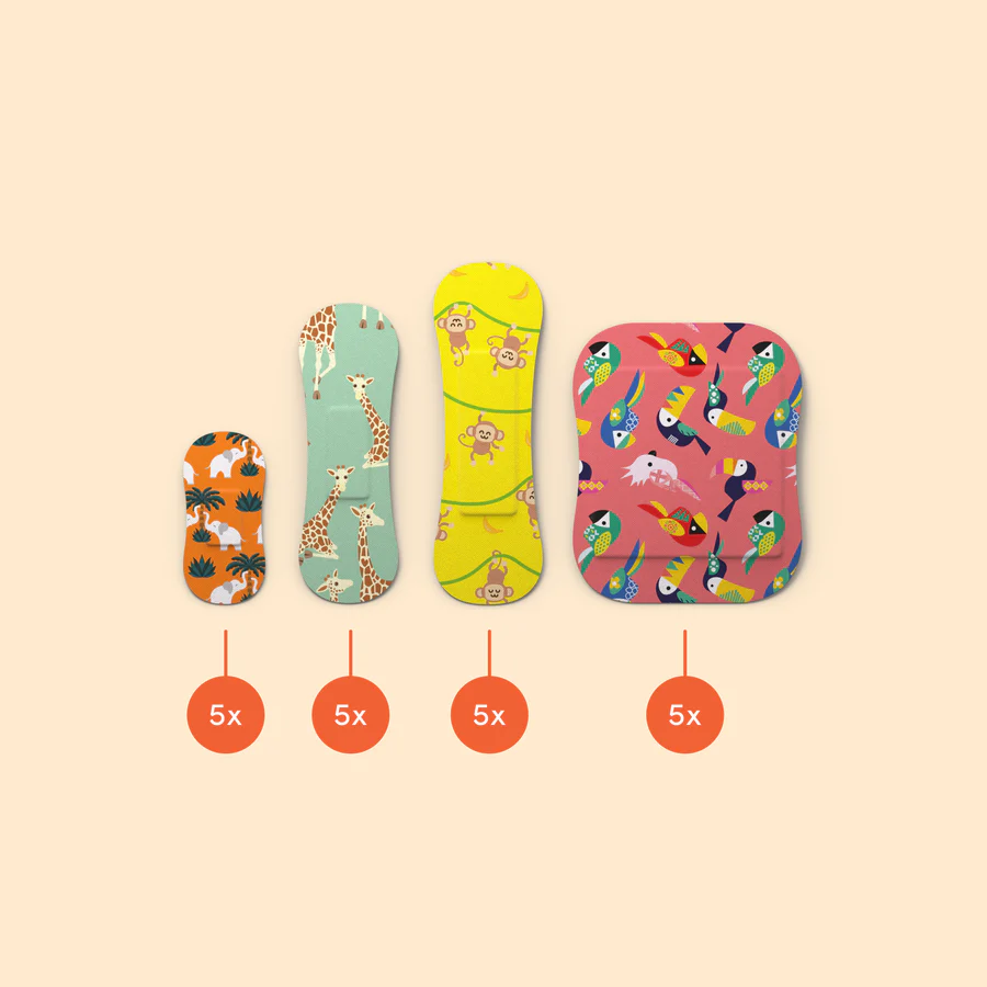 Komplektis leiduvad armsate loomade kujundusega plaastrid toovad naeratuse igale väikesele haavatud seiklejale. Tänu patentse kujuga plaastritele on igasugune väike kriimustus kaetud stiilselt ja tõhusalt.