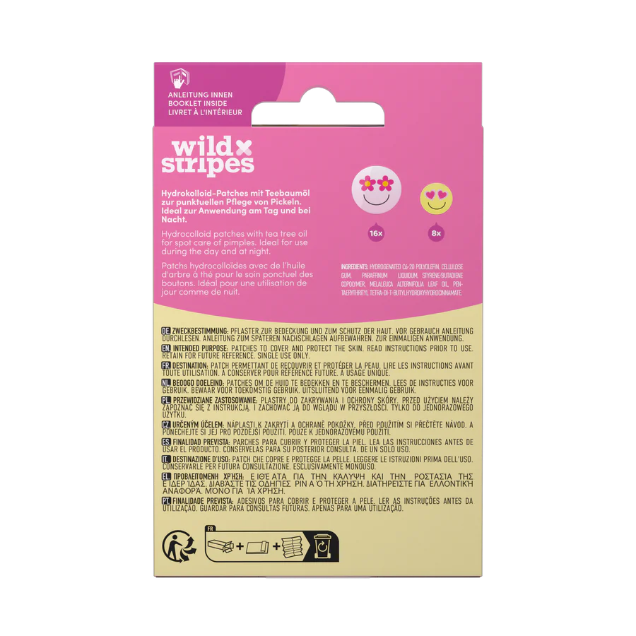 Naerata muretult! Wild Stripes® Smile Stop vistriplaastrid on värvikad ja mängulised abimehed vistrike vastu võitlemisel – stiilselt ja efektiivselt. Need hüdrokolloidist ja hüaluroonhappest valmistatud plaastrid rahustavad nahka, katavad vistrikud diskreetselt ning niisutavad nahka, aidates samal ajal kaasa naha loomulikule taastumisele.